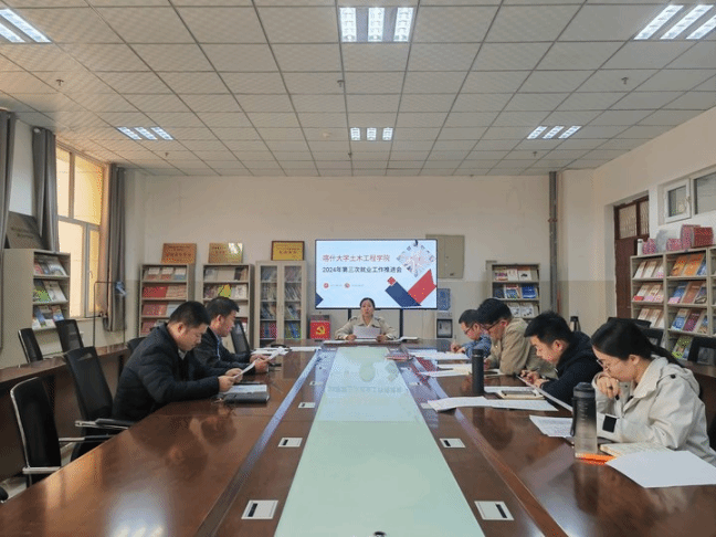 4月3日下午,土木工程学院组织召开2024年第三次就业工作推进会暨培训会,对近期毕业生就业工作进行再动员、再安排、再部署,学院党委副书记马英、毕业班班主任、就业专干参加会议。马英副书记传达了学校就业指导中心近期关于毕业生工作有关会议精神,通报了我院3月以来每周毕业生就业情况,分析了当前就业形势,并对4月13日“职引未来—2024年全国大中城市巡回招聘‘新疆站’喀什大学专场暨自治区公共就业服务进校园活动”具体工作进行安排;...