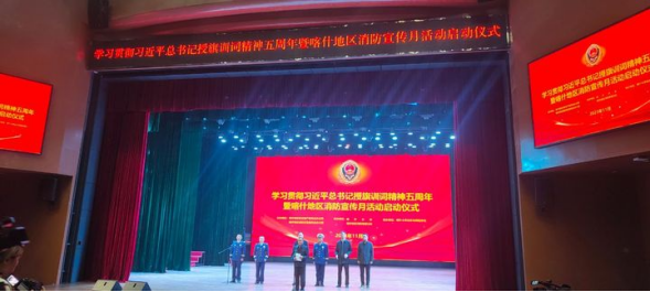 11月8日下午,学院党委副书记马英同志带领学院30余名师生参加了喀什大学联合喀什地区消防救援支队开展的学习贯彻习近平总书记授旗训词精神五周年暨喀什地区消防宣传月活动启动仪式,通过实兵、实装、实景等一系列精彩纷呈的“沉浸式”体验环节,在场师生感受了一次全面生动的消防安全教育体验课。