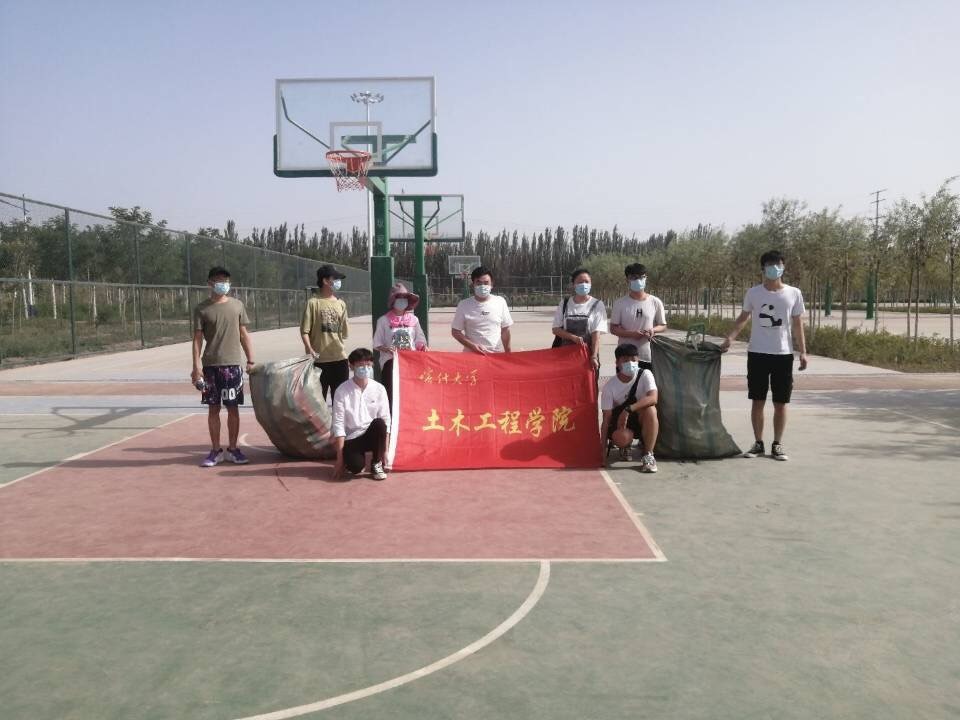 为此在8月7日下午18:00点土木工程学院在院领导和全体教师的带领下开展首次爱国卫生运动活动,组织学生进行卫生大清扫。副院长宁作君、辅导员、各班班主任以及19-1班、19-3班的全体学生在新泉校区东面运动场集合进行卫生打扫,确保篮球场、排球场及周边绿化带内无垃圾杂物,树干、树枝上无乱挂杂物。