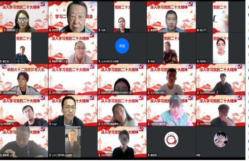 为把学习宣传贯彻党的二十大精神推向深入,11月4日下午,土木工程学院党委特邀马克思主义学院银铃教师赵铁锁教授为我院师生党员开展以“团结奋斗开创新历史伟业”为主题的线上专题讲座,聆听本次讲座的师生党员共50余名。