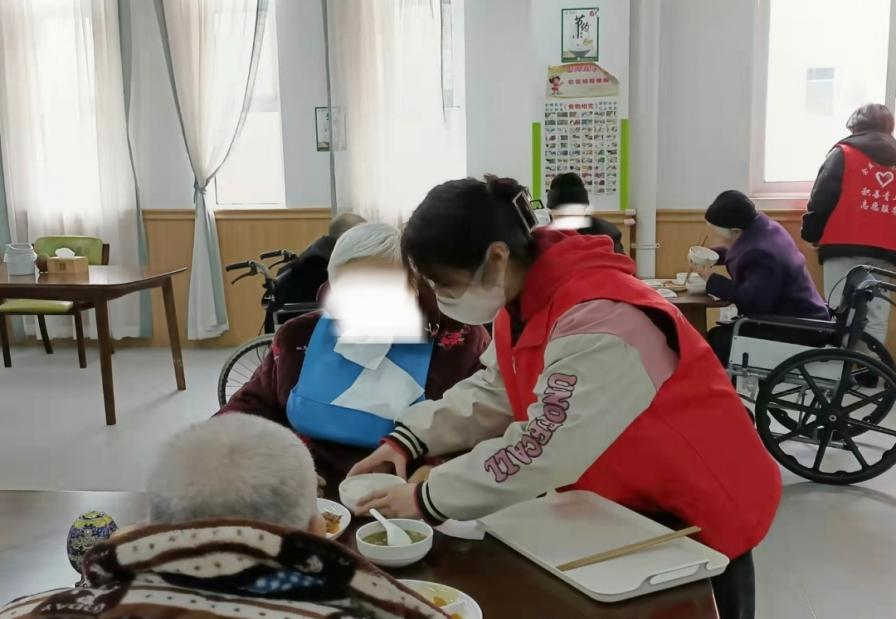 杨淑娴正在帮助老人就餐