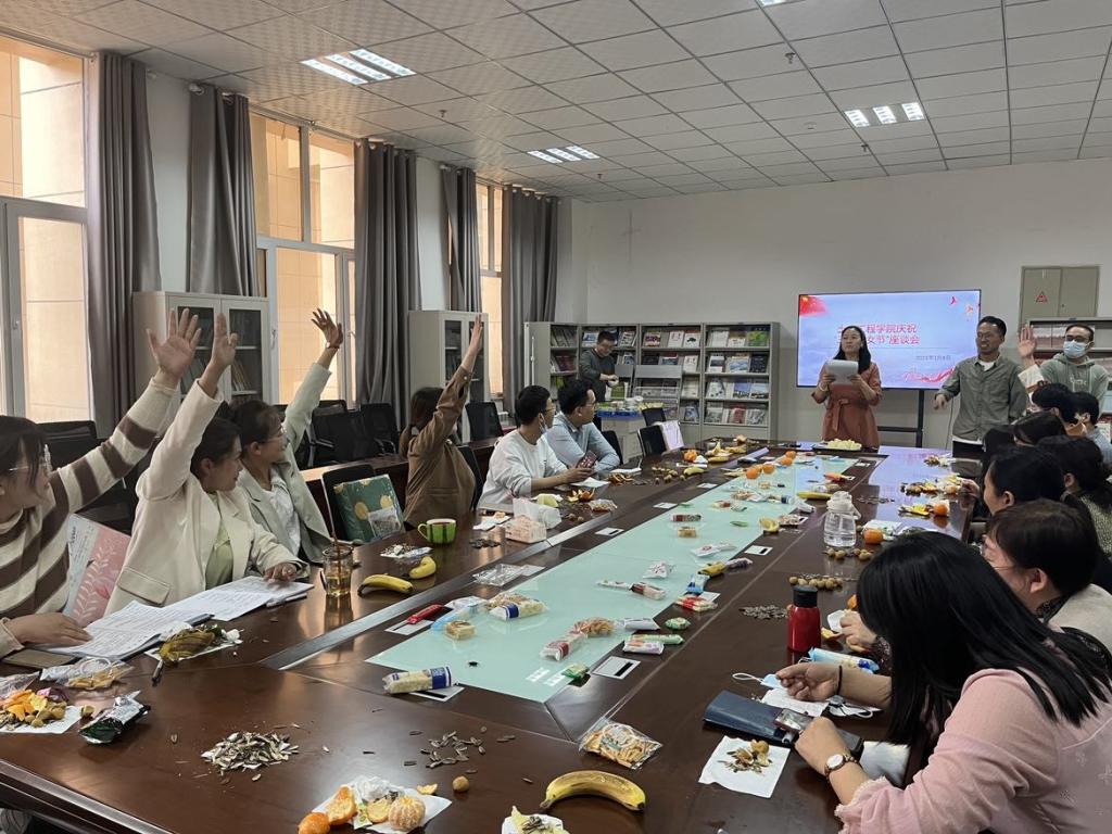 为深入学习贯彻党的二十大精神,弘扬“胡杨般坚韧,红烛般奉献”的喀大精神,激励土木工程学院广大女教师爱岗敬业、积极进取。3月8日下午,学院领导与全体女老师欢聚一堂,共同庆祝第113个国际妇女节,本次庆祝活动包括座谈交流、暖心纪念品发放、党的二十大精神知识竞赛、游艺活动等环节,本次活动由院工会积极组织开展。