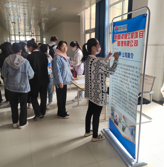 学院党委高度重视本次专场招聘会,提前进行了周密安排和部署,多渠道与疆内各大企业进行联系沟通,诚邀各家企业参加本次招聘会。在招聘会现场,毕业生都手持精心准备好的自荐书和简历,自信满满地在人流中穿梭,积极主动与招聘企业负责人沟通交流,各企业负责人希望应聘者能够在工作岗位上有责任心、能吃苦、扎实工作,并详细介绍了企业基本情况,毕业生与意向企业面对面交流,详细了解企业文化、岗位要求和薪资待遇等。其中喀什广建集团有限公司、新疆前昆工程建设集团有限责任公司等具有发展潜力的国有企业深受广大毕业生的欢迎和关注,在互动交流下,毕业生放平了心态,对找工作充满了信心,听了企业负责人的详细介绍,不少毕业生留在南疆就业的信念也进一步增强,大家纷纷提交个人简历,填写求职登记表;学院领导也主动与各家企业负责人进行沟通,深入了解企业现状和发展前景以及招聘计划,并积极推荐优秀毕业生到各家企业面试,在交流中,不少企业计划与我院建立长期校企合作关系,为今后就业工作有效推进奠定了良好的基础。为了持续有效地开展招聘工作,学院建议招聘企业建立微信群以便发布考试、面试等各种信息;此外,在招聘会现场,不少大三的同学也积极加入,跟随师哥师姐们观摩招聘面试现场,提前了解毕业生就业的信息,掌握就业面试的技巧,为明年的实习和就业做准备。