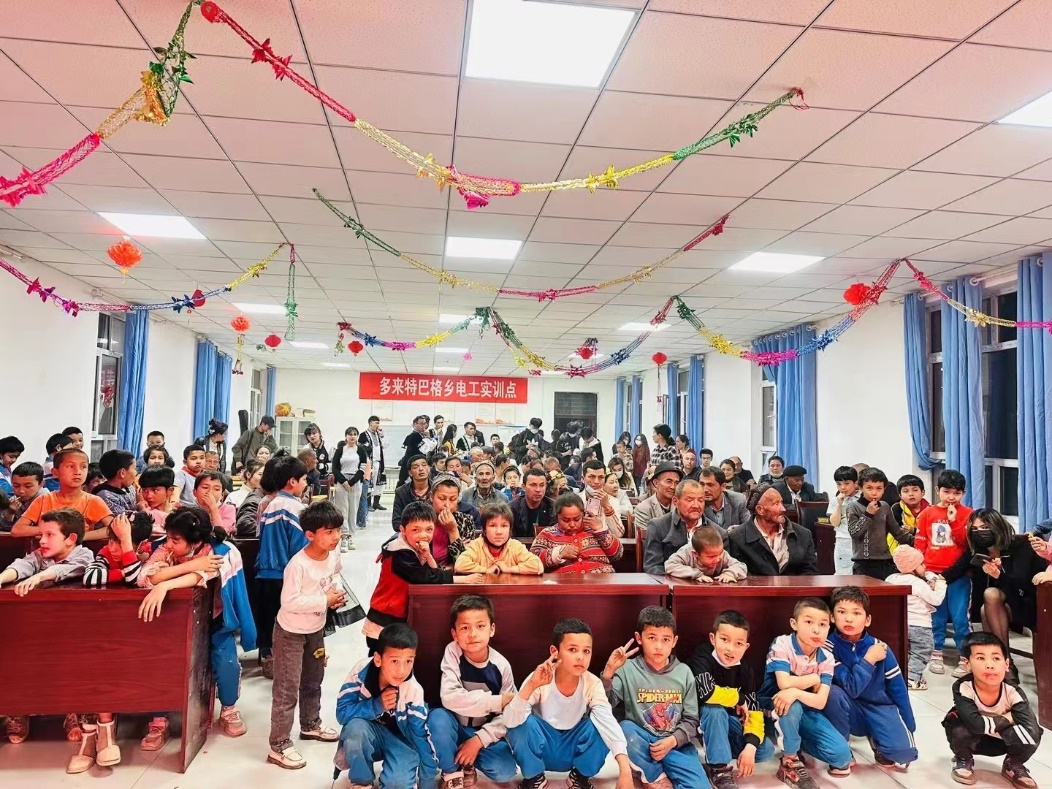 来到村活动中心,同学们就开始紧锣密布地布置场地,调试设备,在大家密切配合下,所有工作很快就准备就绪了。
