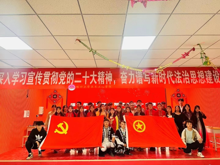 为加强基层群众法治思想,培养群众总体国家安全观,提高法律意识,增强基层群众法治思想,4月19日,土木工程学院团委深入我校“访惠聚”驻村工作队所在村—喀什市多来特巴格乡托尕依村开展以“深入学习宣传贯彻党的二十大精神,奋力谱写新时代法治思想建设新篇章”为主题普法宣传教育与文艺晚会活动,为群众宣讲法律知识,表演文艺节目。本次活动由学院辅导员那斯尔热拉·吾普尔老师带队,学生党员代表、团员代表以及村民共100余人参加了活动。