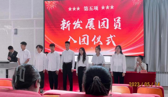 颁奖仪式结束后,由辅导员那斯尔热拉·吾普尔老师宣读了《土木工程学院新发展团员名单》并带领全体共青团员重温入团仪式。