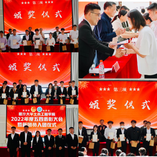 宣读表彰决定随后,进行了颁奖仪式。首先,表彰了获得校级五四表彰先进集体和获得校级青年五四奖章、优秀共青团干部、优秀共青团员的20名同学。其次,表彰了荣获“土木青年五四奖章”的马忠洋、薛晨曦等7名同学;荣获“优秀共青团干部”的韦振等9名同学;荣获“优秀学生(社团)干部”的郭昱嘉等9名同学;荣获“优秀班干部”的罕柯孜·阿卜杜合力力等32名同学;“荣获优秀共青团员”荣誉称号的贺欢欢、曹欣欣等66名同学,荣获“考研典型”的杜傲雷等6名同学;考取专业资格证书的马博、王海朝等15名同学;荣获“就业榜样”的杨强强等5名同学。