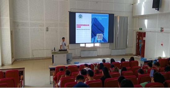 乃比·吾斯曼老师对参加活动的师生进行地震安全教育培训,讲解内容包括上课和生活过程中,面对突发地震如何有效进行逃生及相应的应急处理措施等内容。随后在土木工程学院大楼报告厅进行了地震疏散演练,学生在演练过程中遵守疏散规则,寻找安全地点躲避,演练活动在确保学生安全的同时有序开展。
