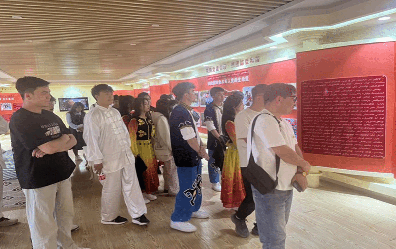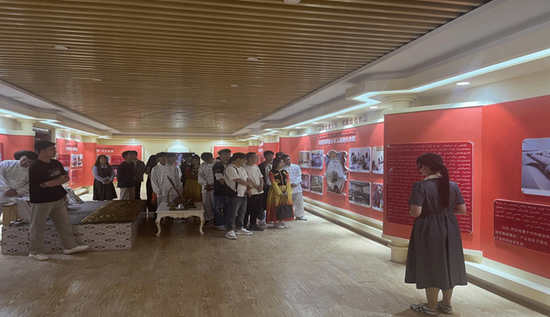 活动伊始,全体师生沿着习近平总书记的足迹一同参观爱国主义红色教育基地,在讲解员的带领下师生参观了“牢记嘱托”“治国安邦,重在基础”“管党兴党,重在基层”“就业是民生之本”“民族团结是各族人民的生命线”“立治有体,施治有序”等爱国主义文化长廊,深刻感悟了习近平总书记对于南疆地区的关心和关怀,看着阿亚格曼干村发展前后对比图,更加深刻感受到进入新时代,阿亚格曼干村在党和政府的大力支持和关怀下高质量发展的步伐和全新的面貌。