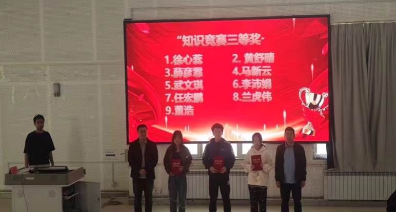 经过紧张有序,公平公正的比赛,最终有5名同学获得“一等奖”、6名同学获得“二等奖”、9名同学获得“三等奖”,土木工程学院给排水与科学工程教研室主任宫厚杰老师、专任教师鲁勇朝老师为获奖的同学们发放荣誉证书和奖品。