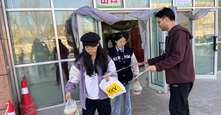 3月22日中午,营造社成员在老师的带领下,分别前往喀什大学新泉校区2号、3号食堂发放节水知识手册、节水技巧卡片等宣传材料;同时,结合节水小知识问答活动,推广科学节水方法和经验,答对的同学奖励小奖品,调动全校师生积极参与,在校园里全面科普了用水节水知识,增强师生的节约用水意识。
